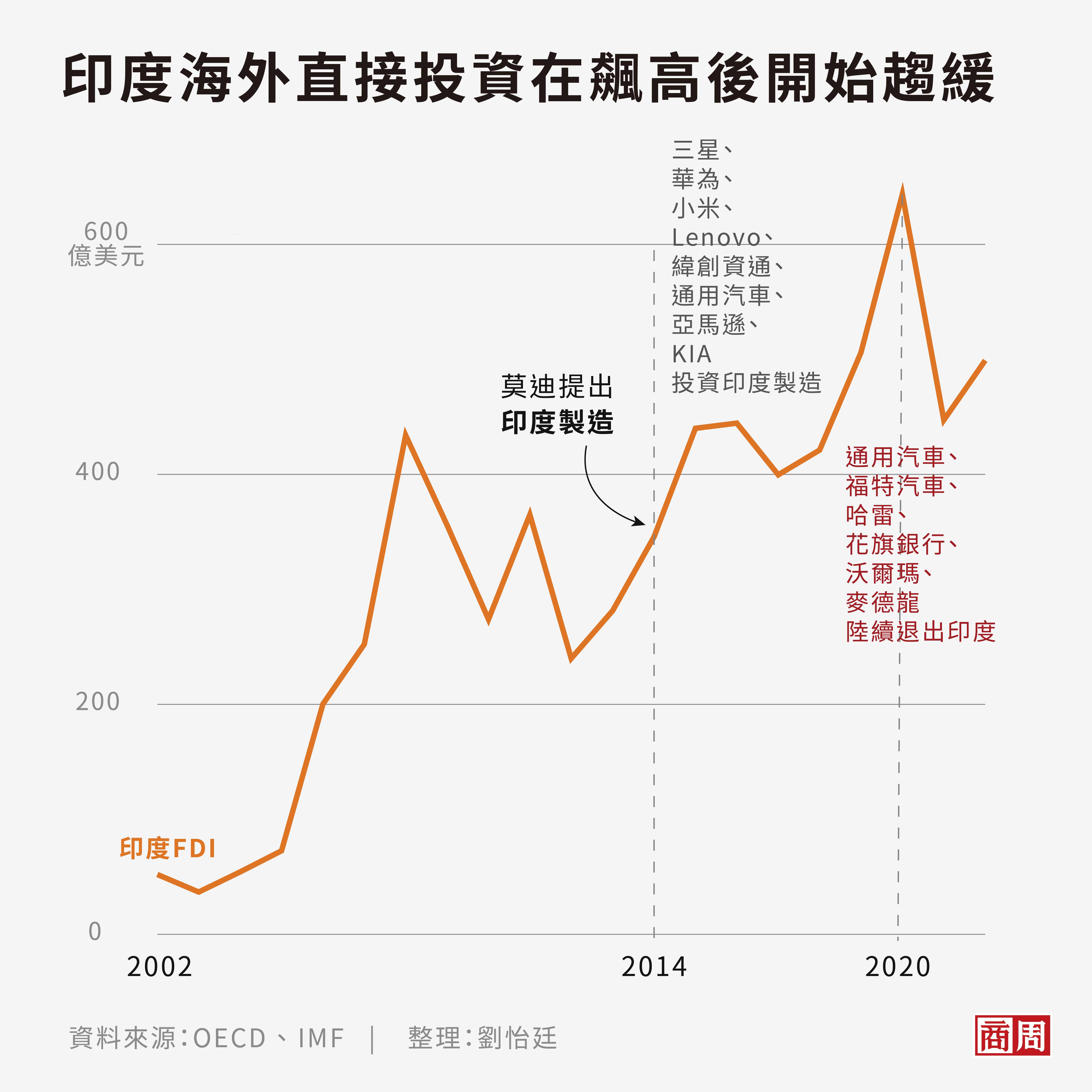 ▲ 印度的外國直接投資正在放緩,三成印度註冊的跨國公司已撤離。