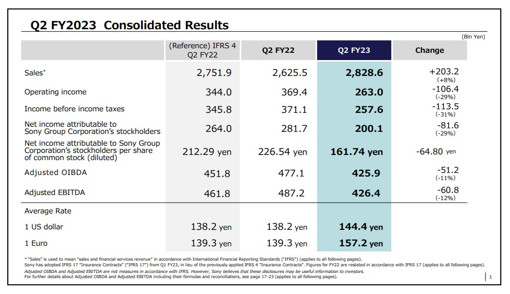 CNBC、路透等外媒報導,Sony於11月9日公布,2023會計年度第二季(截至2023年9月30日止),營收年增8%至2.8兆日圓(185億美元),營利則較去年同期大減29%至2,630億日圓,遠遜於分析師預估的3,044億日圓。