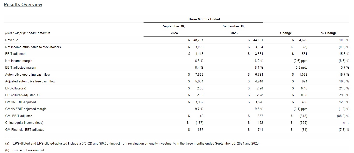 CNBC、路透等外媒報導,通用22日公布,2024會計年度第三季,營收為487.6億美元,優於LSEG統計的分析師預估值445.9億美元;經調整每股盈餘為2.96美元,優於分析師預估的2.43美元。