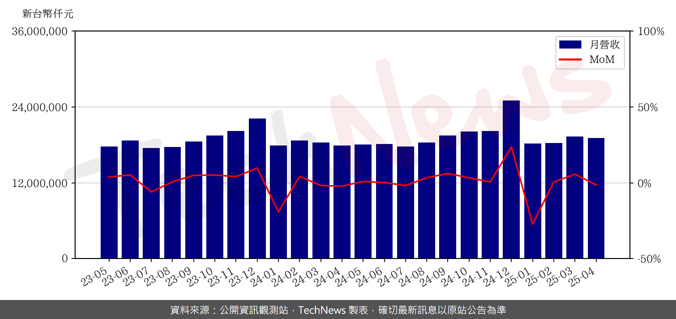中華電(2412)公布 4 月合併營收 190.48 億元,較上(3)月成長 -1.5%,與去年同期相比為年增 6.2%;累計其今年前 4 月營收為 748.57 億元,較去年同期增加 2.7%。