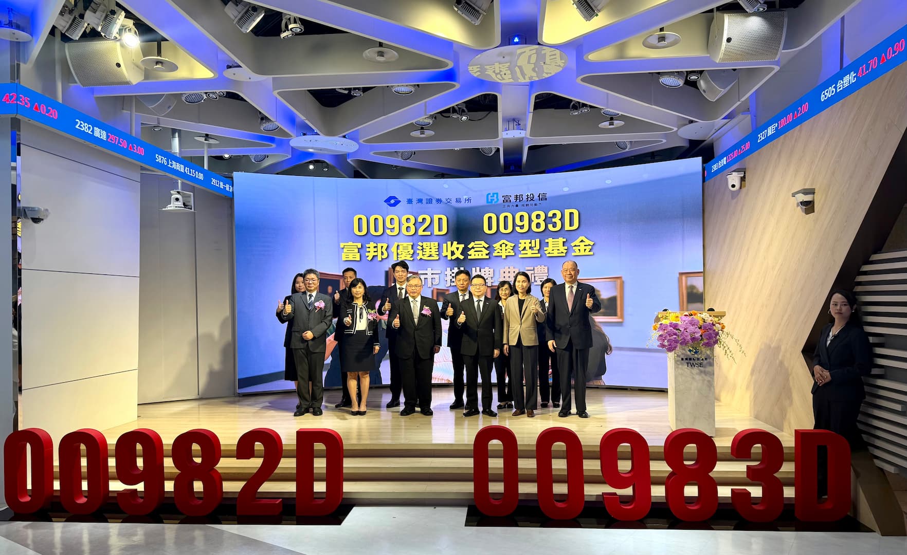 富邦投信發行的主動富邦動態入息(00982D)、主動富邦複合收益(00983D),以及被動式富邦淨零 ESG 50(009809)等三檔 ETF 今日同步掛牌,首日都衝破發行價 10 元之上,董事長黃昭棠表示,台股非常審慎樂觀,即使受到川普美中稀土紛爭,市場快速消化,目前已回歸正常軌道。
