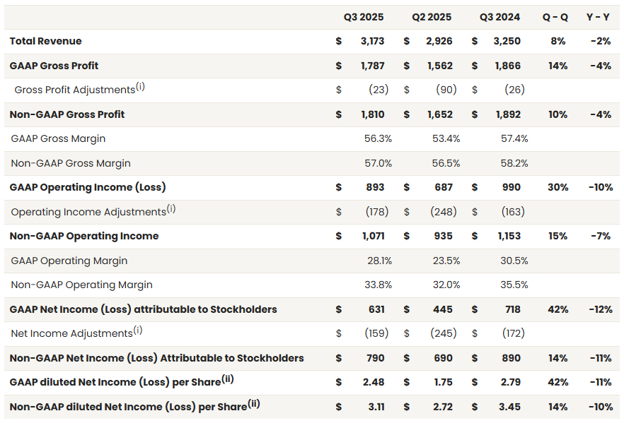 路透社報導,恩智浦27日公布的財報顯示,2025年第三季(截至2025年9月28日),營收年減2%至31.7億美元,但略於市場預期的31.6億美元;經調整每股盈餘3.11美元,符合市場預期。主要動能來自美國對汽車及零組件課徵高關稅,促使車廠擴大在美布局,拉動了車用晶片需求,帶動恩智浦業績進補。