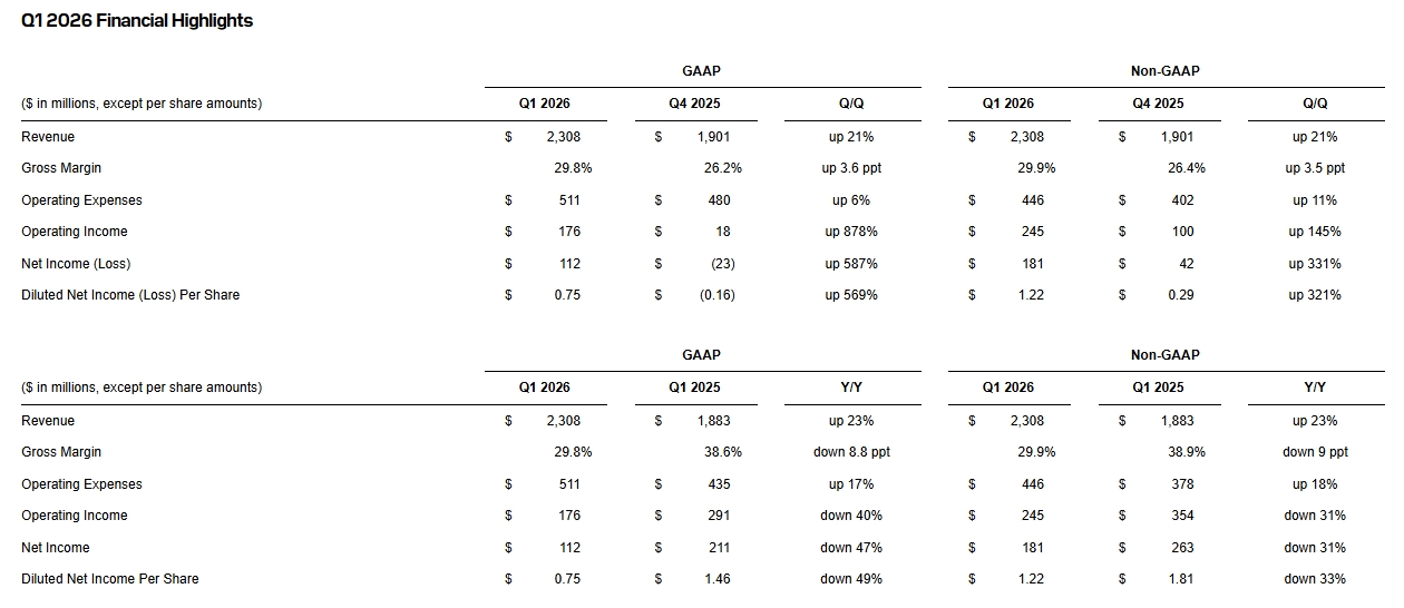 Rakesh報告指出,SanDisk公布的7-9月營收達23.1億美元(優於華爾街預期的21.5億美元);預測10-12月營收有望季增13%至26億美元(優於預期的22.3億美元),毛利率也有望季增12.1個百分點至42% (優於預期的34%),主要是拜AI伺服器需求加速推升報價之賜。