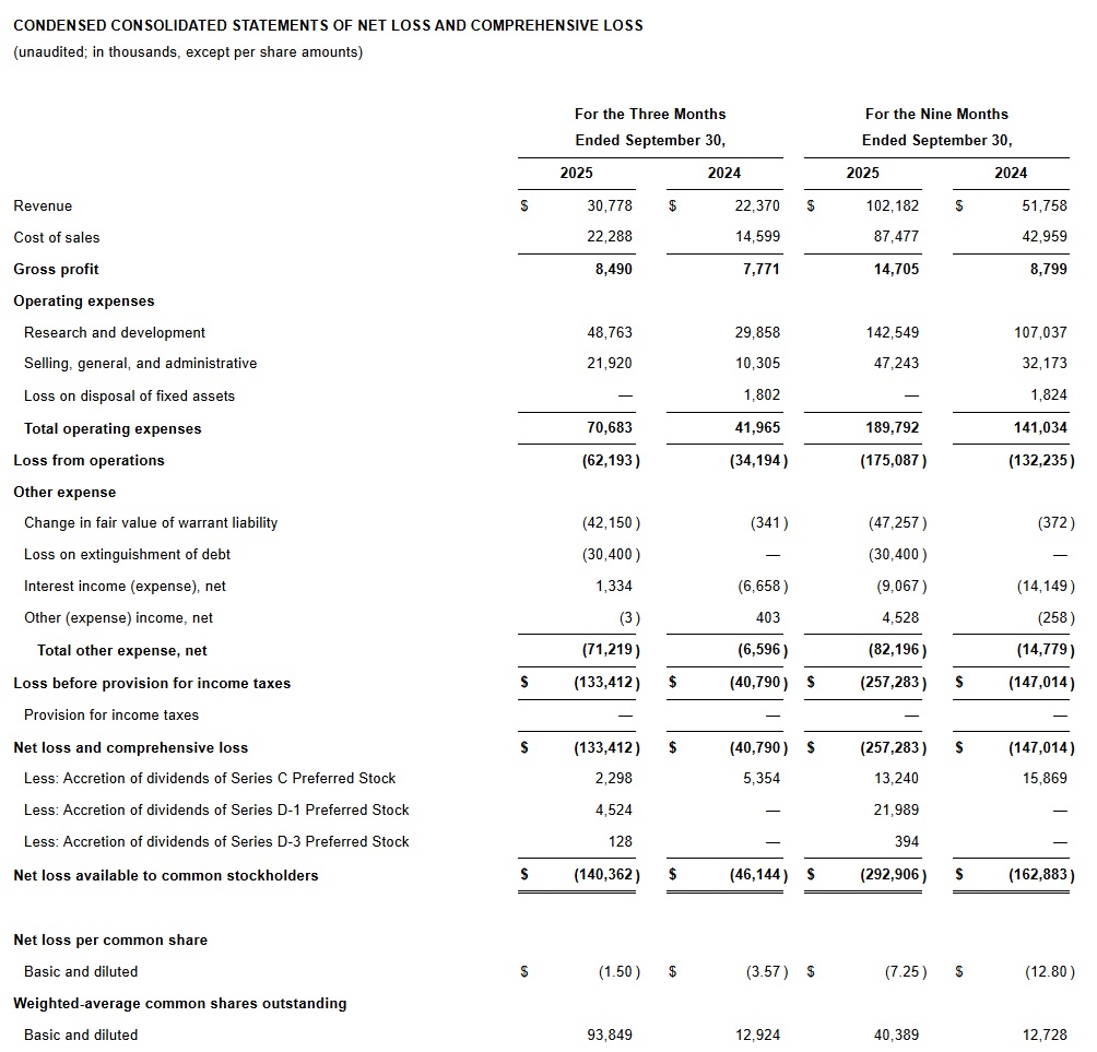 CNBC等外媒報導,Firefly於12日美股盤後公布財報,2025年第三季(截至2025年9月30日),營收達3,080萬美元,較去年同期大增近38%;淨損1.404億美元,即每股虧損1.50美元,主要因IPO相關成本、匯損,以及支付給高階主管鉅額的遣散費所致。