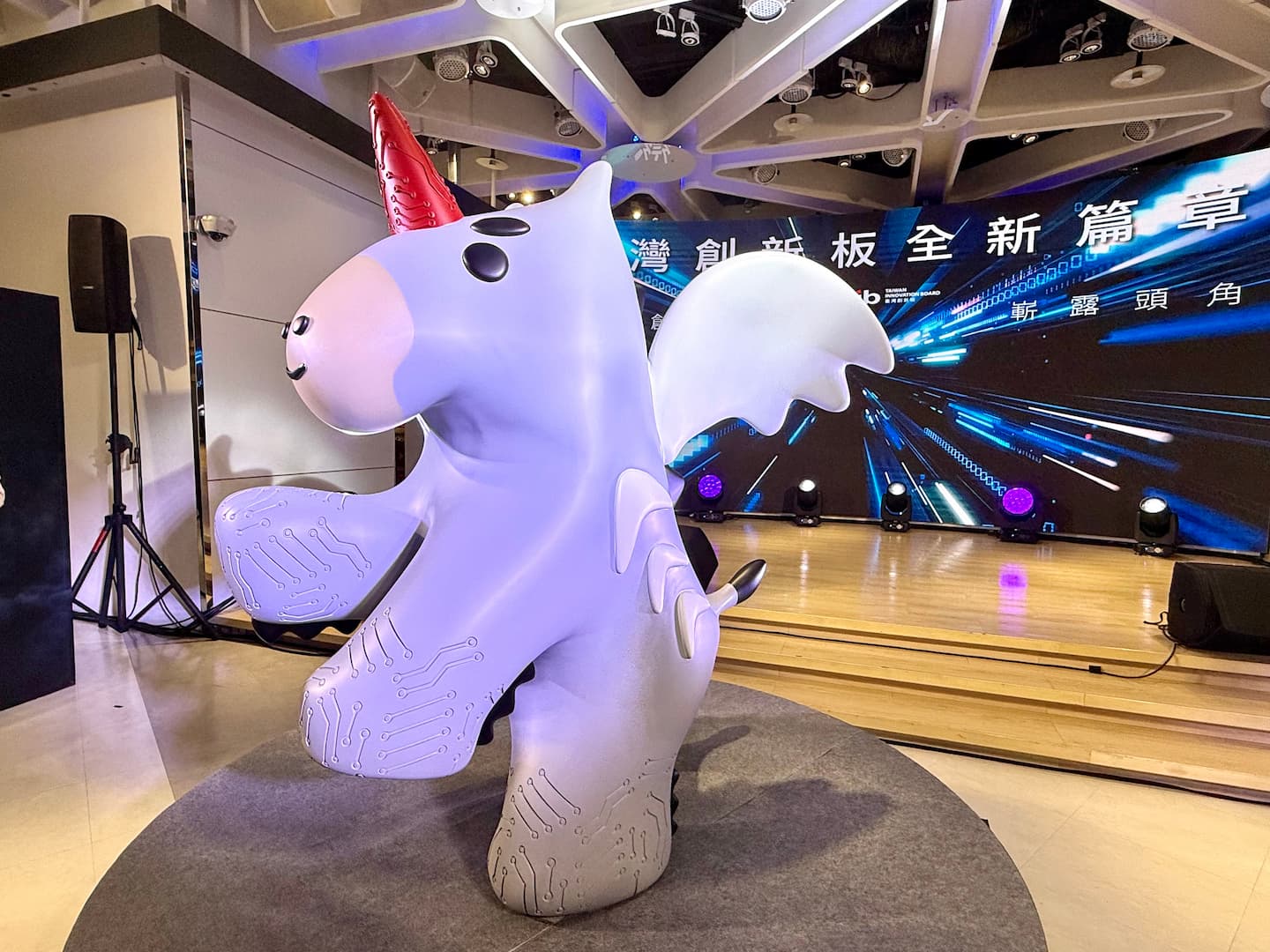 林修銘分享,「獨角獸 tibit」的四隻腳都有半導體元素,代表「tibit」不僅是國際獨角獸,並擁有台灣引以為傲的數位科技發展元素,充滿台灣國際新創的形象,未來將會代言創新板到台灣每一個角落,代表著台灣的精神,帶著鹽酥雞和珍珠奶茶走出去。