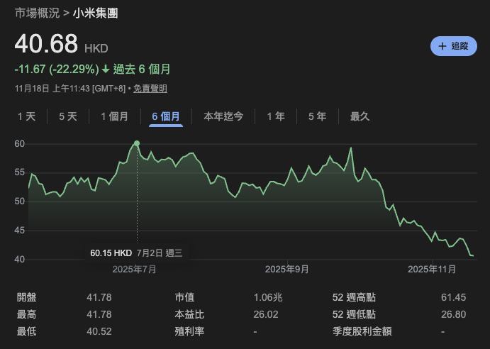 2025 年 6 月小米在手機和電動車雙雙助拳之下,準備強勢挑戰市值 2 千億美元的高山,沒想到從 9 月之後情勢大逆轉,股價一路暴跌近三成,究竟它面臨哪些危機?