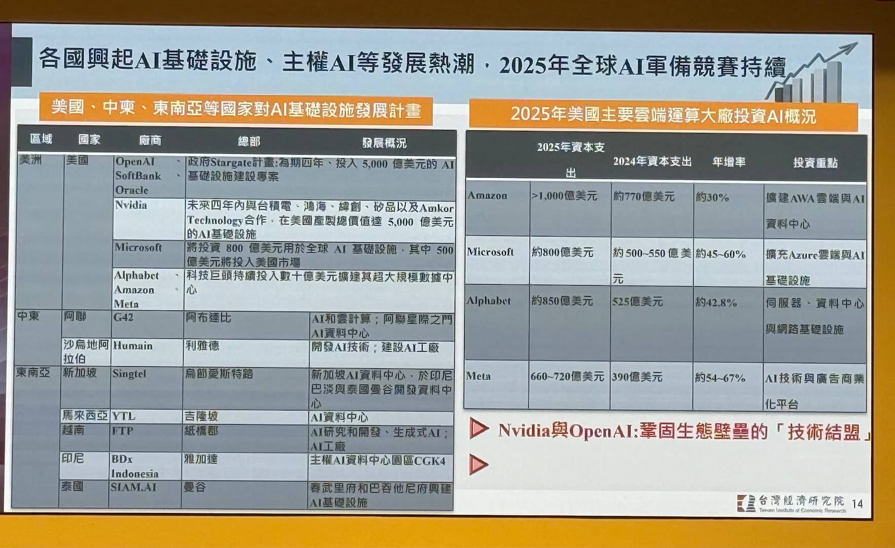 台經院產經資料總監劉佩真表示,台廠赴美設廠有利深化與 AI、雲端等關鍵客戶的合作,並分散地緣政治風險,但將面臨高成本、人才與供應鏈難以複製等挑戰,而核心研發與先進製程必須留在台灣,維持技術領先,才能在全球供應鏈重組中持續鞏固競爭力。