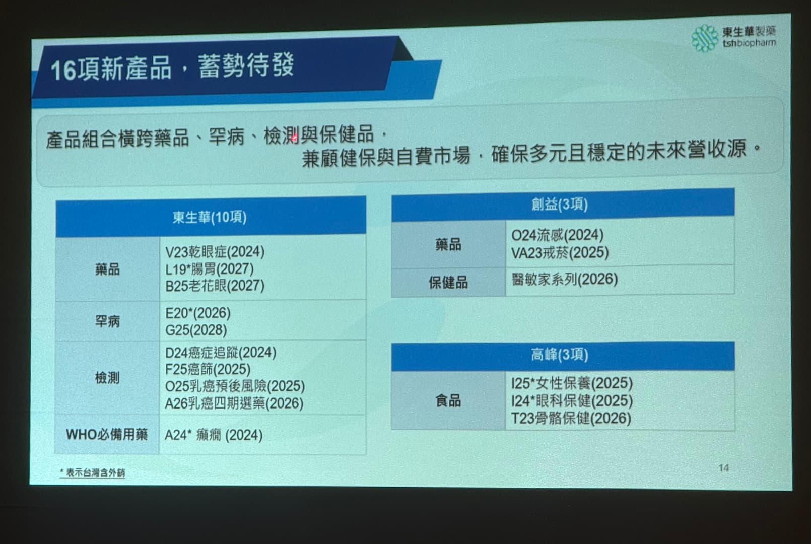 針對高齡化社會需求,楊思源指出,東生華正積極引進創新老花眼療法  BCSA25,預計下個月有機會獲得美國藥證批准,而東生華將會在明年第一季送出台灣查驗登記,力拚 2027 年取得,目標成為台灣首個治療老花眼的處方藥品。