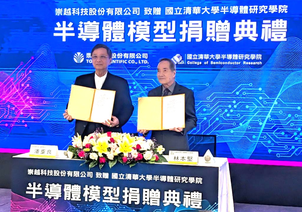 而針對崇越科技捐贈三座半導體模型予國立清華大學半導體研究學院,協助教學展示與研究推廣,身為清華大學半導體研究學院院長的林本堅指出,清華半導體學院整合清華教學與研究資源,以打造「國際領先的半導體研究重鎮」為目標。面對全球半導體技術快速迭代、跨領域整合與供應鏈競爭升高,此次攜手崇越科技,有助加速推動產學協作,增強台灣在先進製程與材料領域的人才與研究能量。