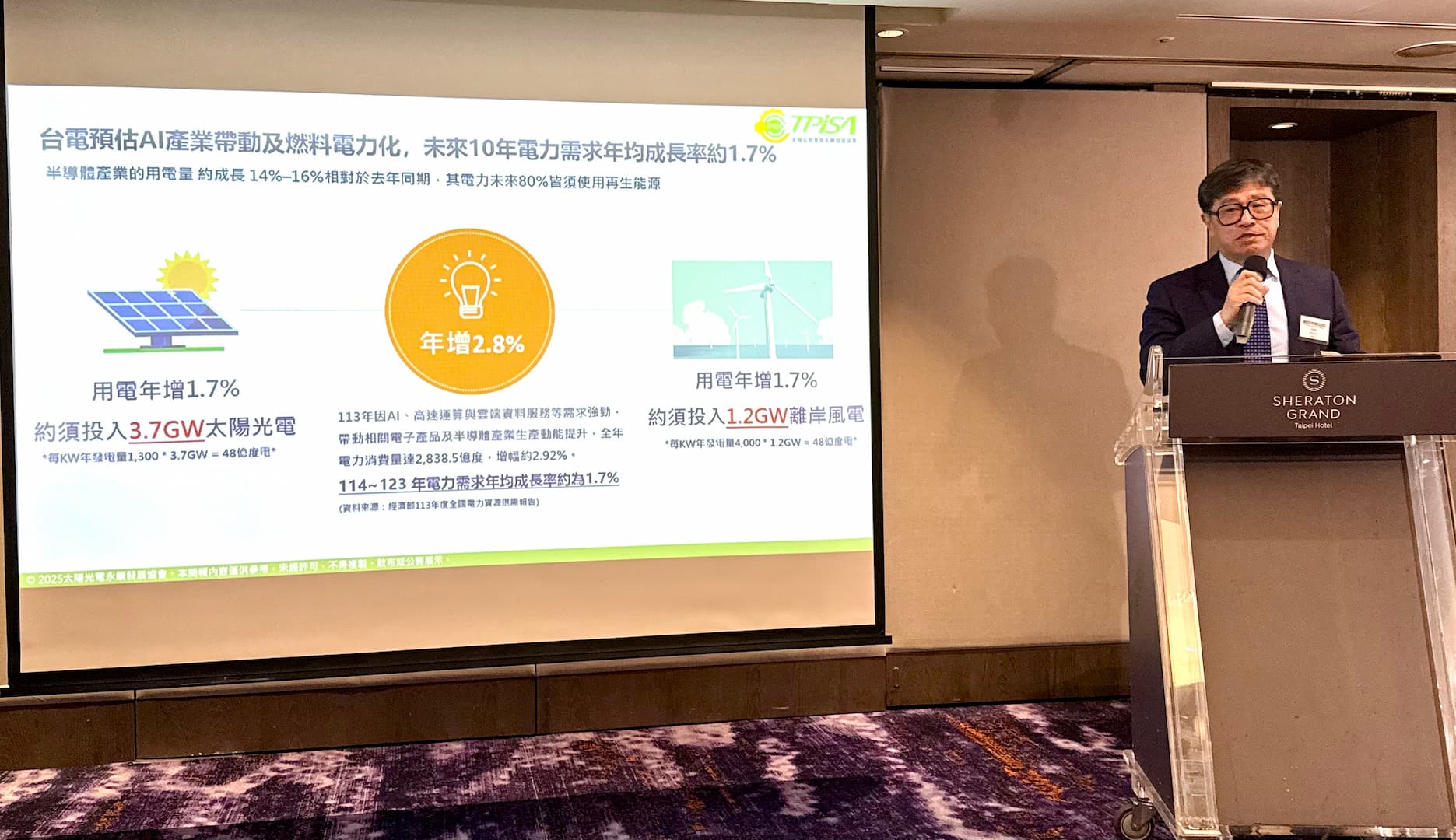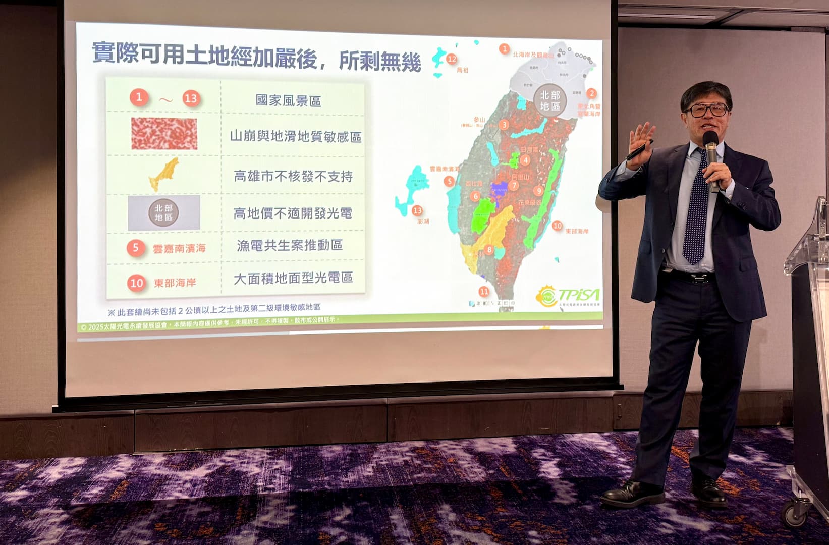 太陽光電產業協會理事長林銘福表示,光電已從單純發電來源進化為「電網支撐者」但受限土地資源有限與輿論過度解讀,許多不必要的行政要求使設置目標不斷延後,而面對極端氣候威脅,淨零轉型是「硬需求」,台灣很難與全世界的主流趨勢背道而馳。