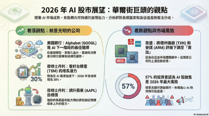 總結而言,2026 年的 AI 市場將不再是 「雞犬升天」 的普漲格局。執行力、競爭地位以及投資報酬率 (ROI) 將成為區分市場贏家的核心指標。
