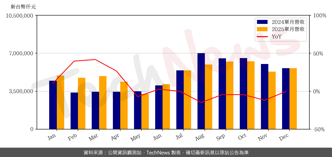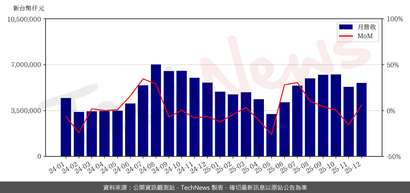 大立光累計去年全年稅後盈餘212.82億元,年減18%,毛利率50.3%,每股盈餘159.46元,較2024年194.17元降低。展望今年,林恩平表示,今年1月營運動能預估比去年12月下滑,2月因農曆春節假期,業績會比1月再下滑。