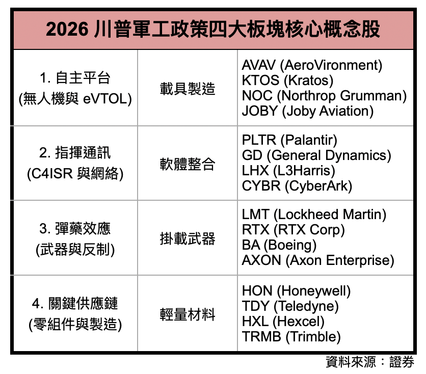 揮別 2025 年,川普的政策牽動著全球金融市場波動,因此迎接 2026 年,搞懂川普投顧的劇本非常重要,從川普呼籲將 2027 年度的國防預算提高至 1.5 兆美元,增幅超過五成,再搭配美國對委內瑞拉的軍事行動,地緣政治的緊張局勢,使全球軍工產業再度成為資金追逐的焦點。