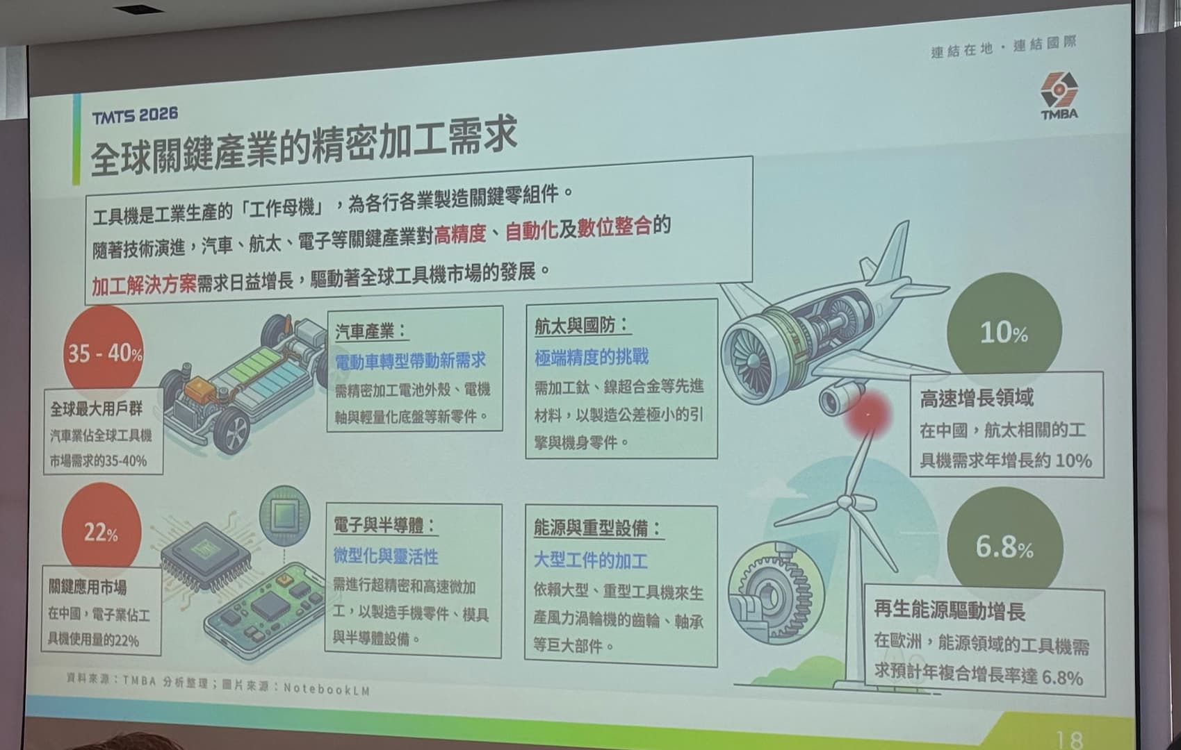 陳紳騰強調,單機銷售已成過去,未來關鍵是提供整合型解決方案,協助客戶解決實際痛點,像是 2025 年工具機出口產值滑落 10%,但同期進口設備卻成長 16%,對產業是一項警訊,而今年有六成業者預期將成長 5~10%,但前提是能快速回應市場需求、調整全球布局,強化產業差異化優勢。