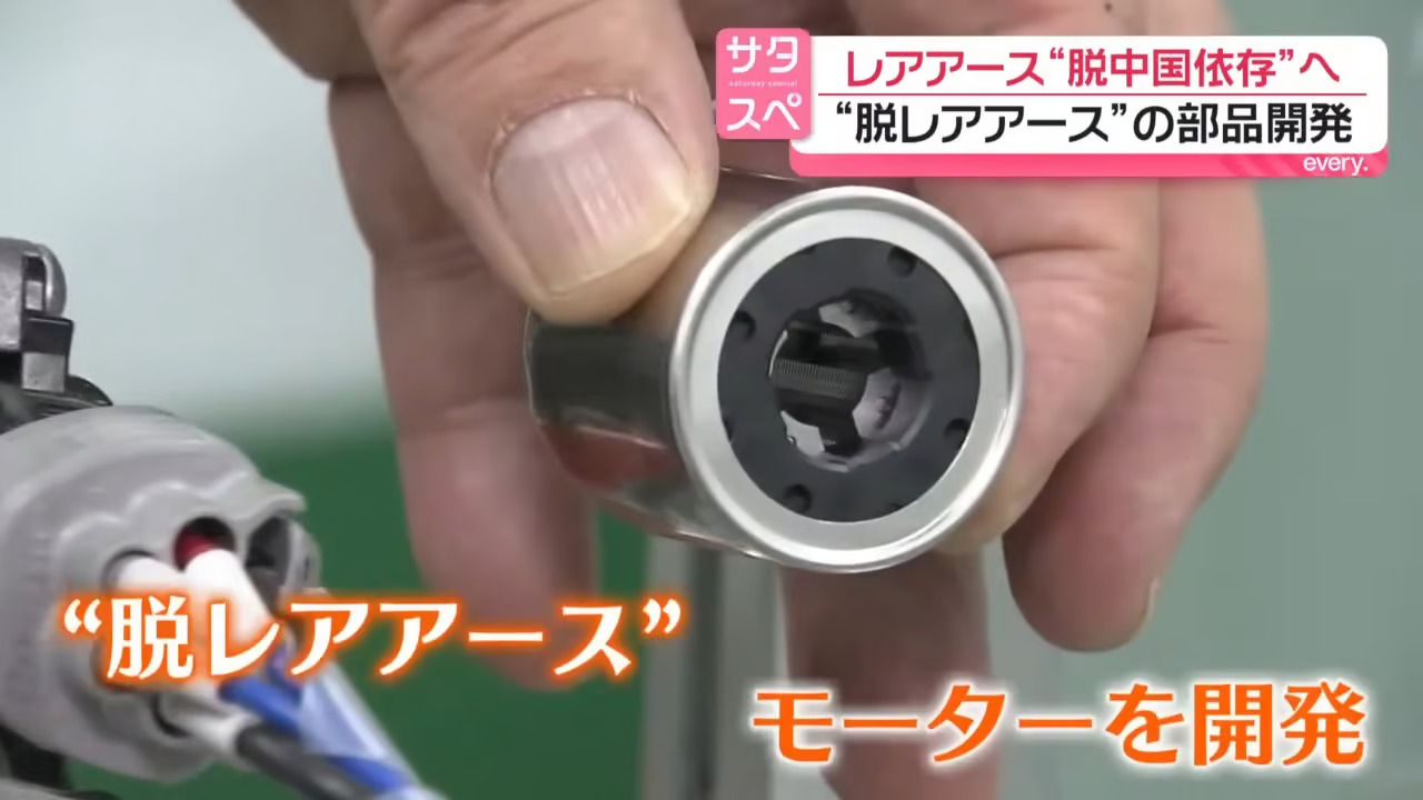 中國日本關係持續緊張,使日本稀土來源不穩。日本群馬縣汽車零件商山信金屬工業,成功開發不使用稀土雨刷系統馬達,負責人表示,雨刷系統核心部分採無稀土馬達,整合多個易取得低價磁鐵,竟與稀土磁鐵輸出功率同級。