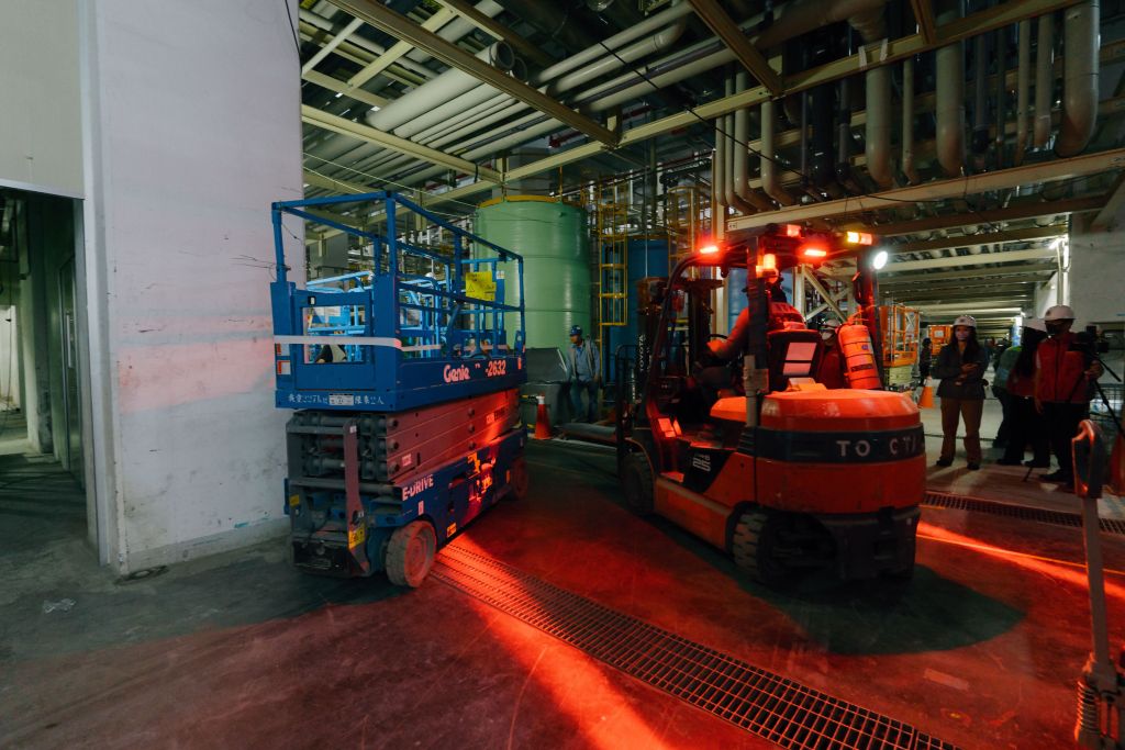 而在硬體升級方面,台積電徹底改變了傳統工地的樣貌。為了避免人車爭道造成的風險,工區內實施嚴格的人車分流動線管制,並引進了 「圓盤式系統施工架」。相較於傳統鷹架,這種系統配備標準化安全扣件與防滑踏板,大幅提升了穩定性與組裝效率,。此外,針對高風險的高空作業,台積電試行 「爬昇式無鷹架施工平台」,這如同為建築外牆施工裝設了專屬電梯,讓人員能在完整防護的平台內作業,顯著降低墜落風險。針對堆高機作業,則首創 「安全警示系統」,透過紅外線投射、速限管理與人距智慧感測,主動預警潛在碰撞。