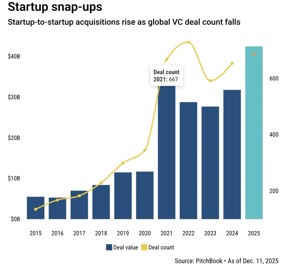 ▲ 根據PitchBook統計,2025年新創併購新創創下新高峰。(Source:PitchBook)