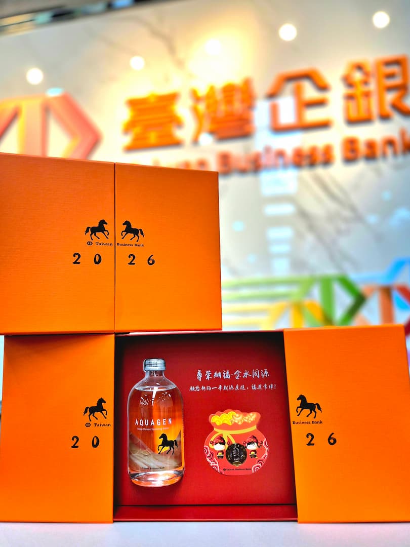 臺灣企銀今年首度規劃專為財富管理尊榮客戶推出極具收藏價值限量的「駿馬富裕禮盒」,禮盒外觀採特殊「雙開門」設計,象徵「左右逢源、財門大開」,內含象徵「事業蒸蒸日上、財氣翻騰」的氣泡開運水,以及象徵「守財納福、富裕綿延」的聚寶發財金。