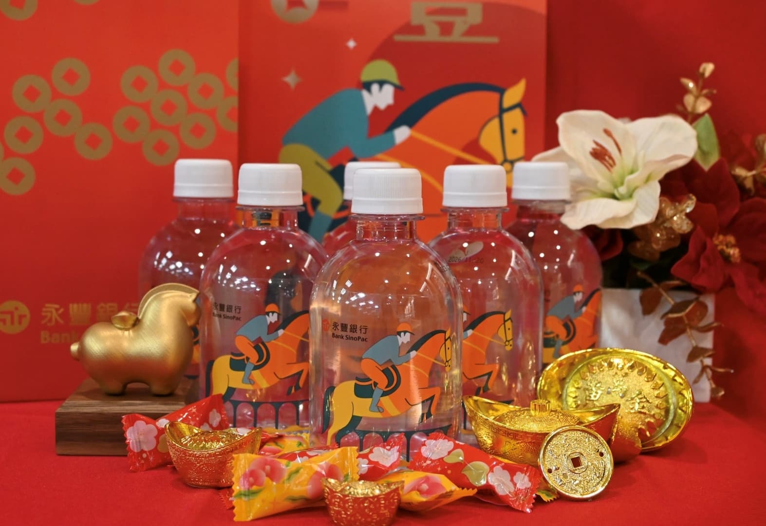 永豐銀行新春推出開運「馬年四寶」,包含發財水、迎福春聯、聚寶袋與發財糖,預計農曆春節前在全台 125 家分行,每日各發送限量 88 瓶發財水,預計送出逾 3 萬瓶,並在營業大廳提供兩款發財糖,為客戶添福氣,更推出 16 款「小蜜豐超實用日常」LINE 療癒貼圖。