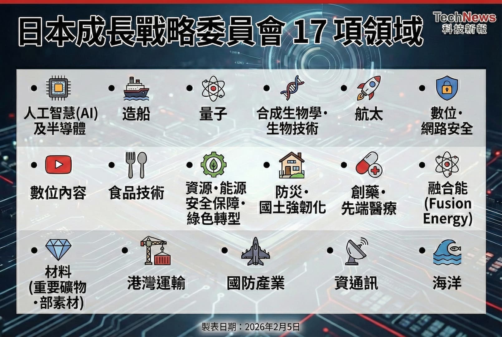 日本首相高市早苗成立「日本成長戰略委員會」,正投入更多資源到機器人、半導體、量子運算及合成生物學等領域,這些技術雖然源於民用,但在現代戰場具有決定性影響,同時透過「軍民兩用技術」與「放寬防衛設備出口」作為日本經濟發展的引擎。