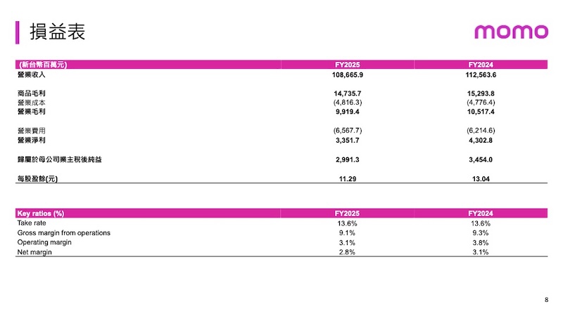 ▲ momo 公布 2025 全年財報數據。(Source:富邦媒)