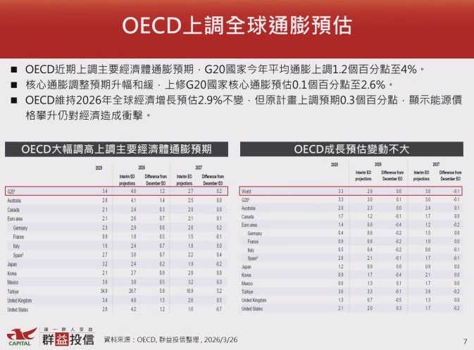 群益中小型股基金經理人周立民分析,儘管地緣政治衝突導致油價波動與短期震盪,但在 AI 需求全面爆發,主計總處大幅上修今年經濟成長率至 7.71%,顯示基本面強韌。