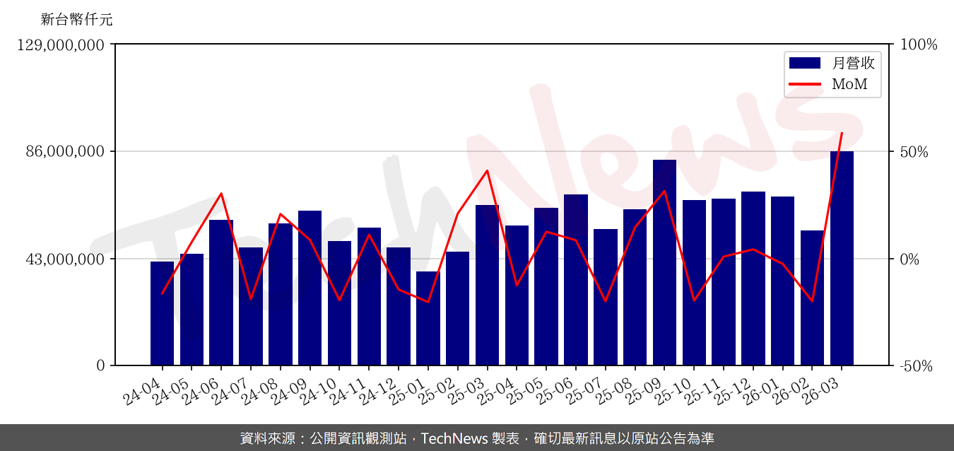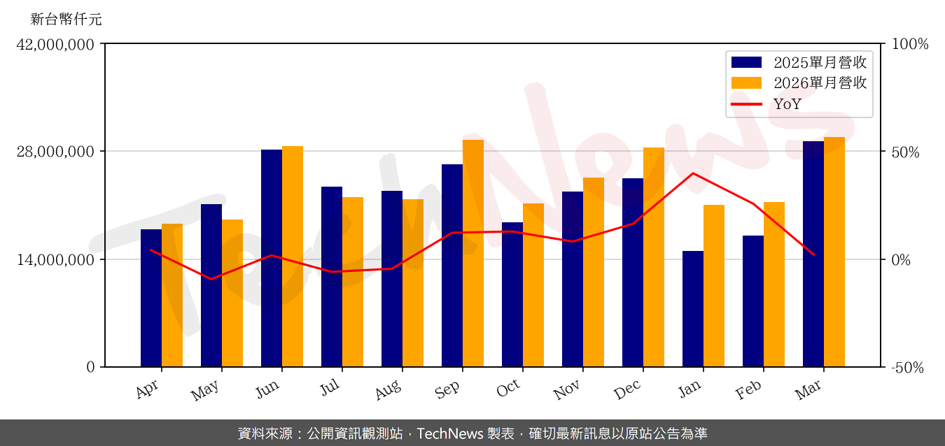 電腦品牌廠華碩受惠伺服器與 PC 營收成長,今天公布 3 月集團合併營收約新台幣 860.84 億元,月增 58.4%,年增 33.9%,創單月歷史新高。宏碁 3 月合併營收達 298.96 億元,月增 39.3%,年增 2.1%,為疫情後同期新高。