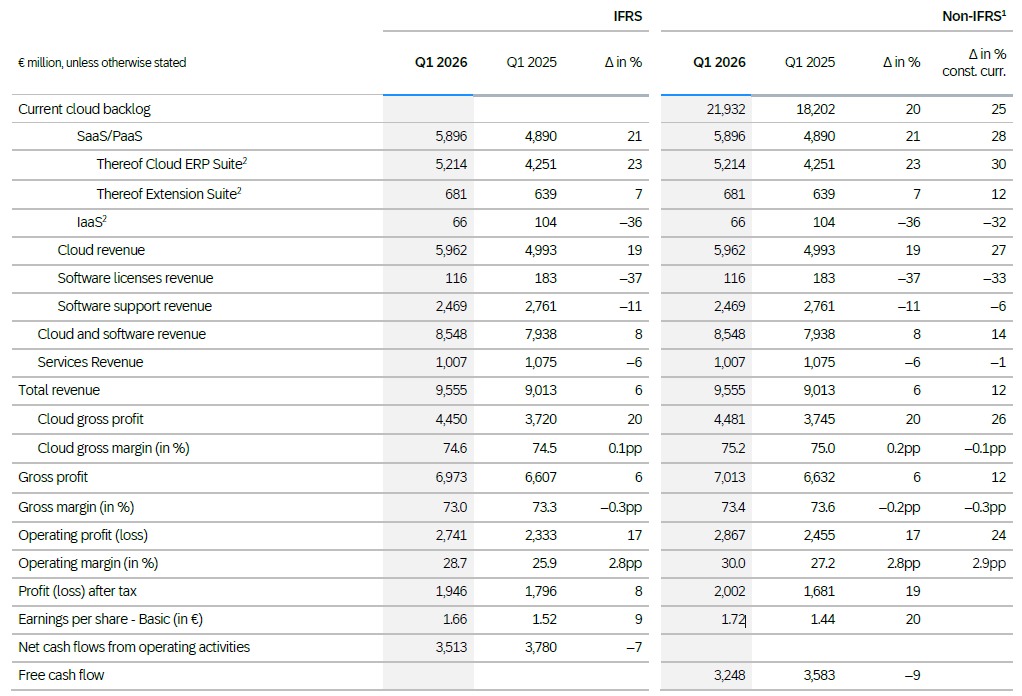 SAP維持財測,預估全年雲端業務成長23%至25%,但整體將取決於中東衝突能否緩和。預估2026營收成長與2025年保持相似水平,並於2027年加速成長。