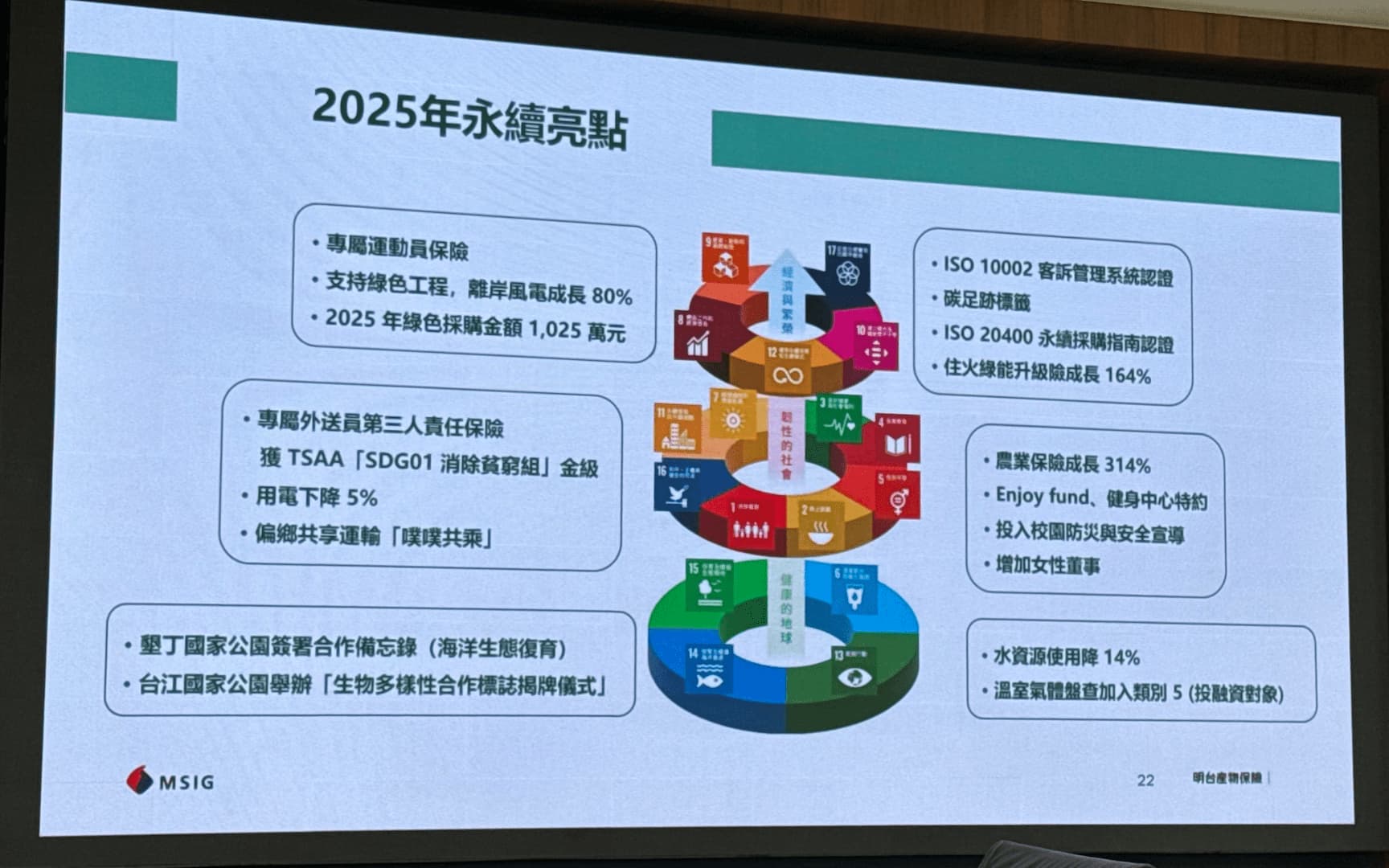 明台產險總經理唐世澤表示,隨著消費者由「被動投保」轉向「主動風險管理」,市場需求已從單一保障轉為整合性解決方案,明台引進日本母公司三井住友海上集團的經驗,推出全台首張「外送員第三人責任保險」,補足新興產業成長的保障缺口,目前受保障的外送人員已達數萬人。